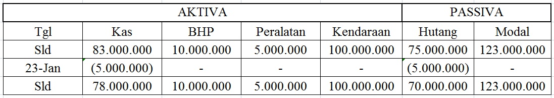 Tgl 23 Jan 20xx Dibayar cicilan kendaraan sebesar Rp 5.000.000,-.