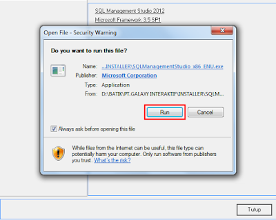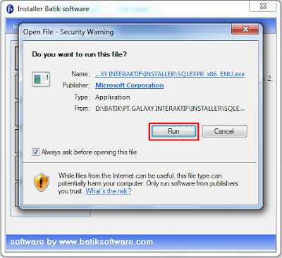 2) Sehingga tampil jendela dibawah ini, klik Run untuk melanjutkan instalasi.