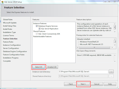 16) Pada jendela Feature Selection, pilih Select All kemudian klik Next .