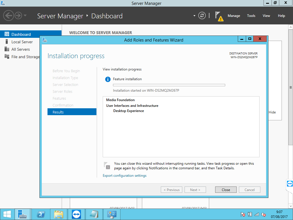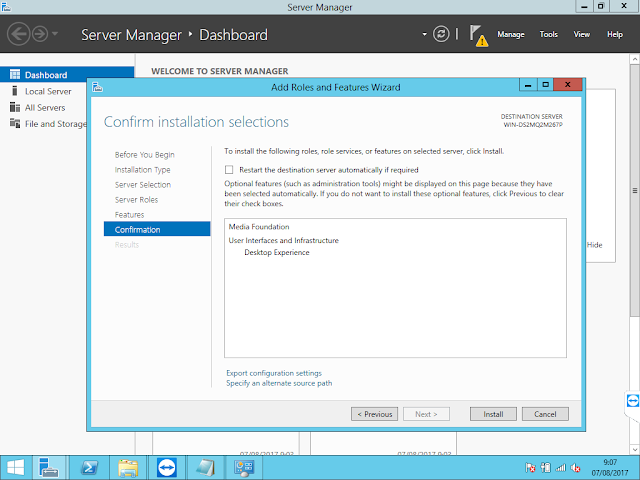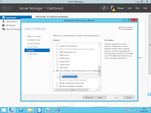 Infrastructure dan checklist Desktop Experience lalu klik Next.